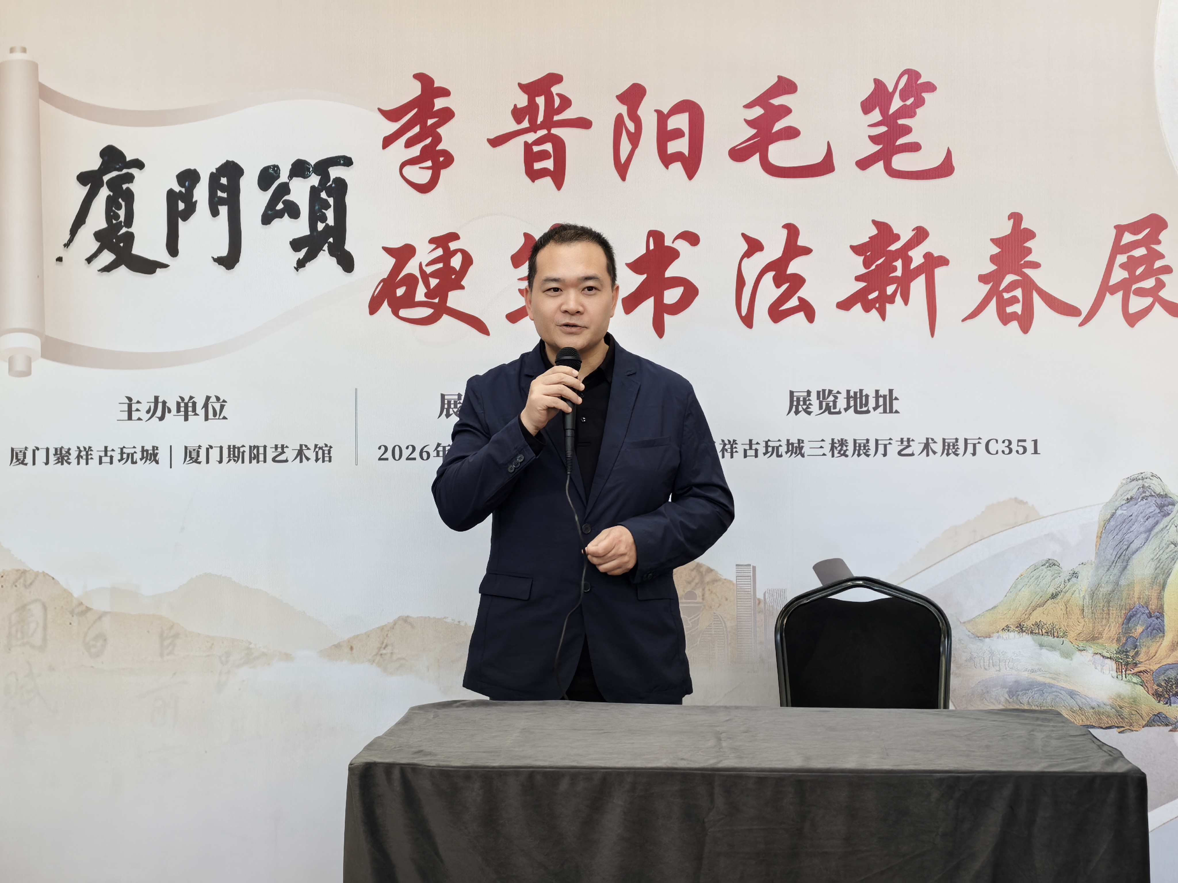 开幕式现场,氛围热烈而庄重,相关领导、文化界嘉宾先后致辞,祝贺本次书法新春展的成功举办,认为展览以书法为媒,既传承了中华优秀传统文化,又以“厦门颂”为主题,书写鹭岛风情、讴歌时代发展,为新春佳节增添了浓厚的文化气息,也为厦门书法爱好者搭建了交流学习、展示提升的优质平台。李晋阳先生分享了自己的创作心得,他表示,厦门的山海风光、人文底蕴始终是自己的创作灵感源泉,此次展览特意遴选了多幅书写厦门元素、新春祝福的作品,既有毛笔书法的雄浑厚重,也有硬笔书法的精致灵动,希望通过笔墨传递对厦门的热爱、对新春的期许,让更多人感受书法艺术的魅力,传承中华文脉。