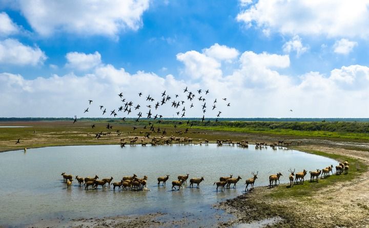 2025年10月11日,在江苏东台条子泥湿地,候鸟飞翔,成群野生麋鹿悠闲散步,一派人与自然和谐共生的生态美景(无人机照片)。新华社发(孙家录摄) 实践发展永无止境,理论创新永无止境。 2023年10月,习近平文化思想在全国宣传思想文化工作会议上正式提出。 做好“人文经济学”大文章,以文化赋能经济社会发展,推动人文和经济共生共荣、相得益彰;优化文化产品和服务供给,更好满足人民精神文化需求,努力促进人民群众物质生活和精神生活都富裕…… 习近平文化思想唤醒文化自信最基本、最深沉、最持久的力量,全民族创新创造活力竞相涌流,中华文明传播力影响力不断增强。 日新月异的实践为理论创新带来丰沛滋养,与时俱进的理论指导着实践阔步向前。 5年来,在逆全球化寒流涌动、产供链遭受冲击的背景下,中国经济总量连续跨越110万亿元、120万亿元、130万亿元关口,2025年预计达140万亿元左右,对世界经济增长贡献率保持在30%左右,成为稳定可靠的动力源; 5年来,中国创新引擎更为强劲,城乡区域协调发展厚植优势,美丽中国从愿景变为现实,改革开放绽放崭新气象,国家治理效能持续增强,中华民族凝聚力进一步提升,全体人民共同富裕正一步一个脚印向前推进。 “中国式现代化进程对21世纪的影响才刚刚开始”,外媒评价,中国没有追随西方模式,而是开辟了自己的道路,将创新、战略和前瞻性思维相结合。中国的进步不仅体现在经济上,还体现在技术和社会方面,其驱动力来自共同繁荣的独特方式。