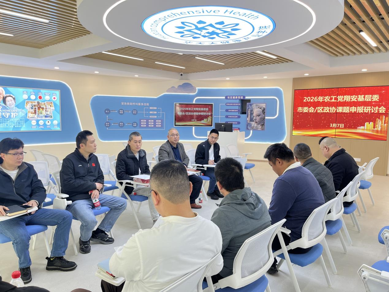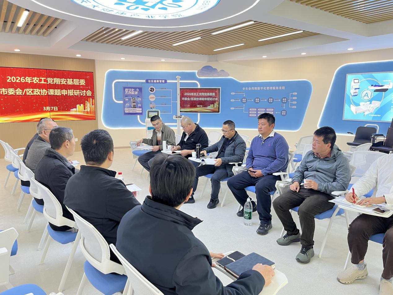 为充分发挥民主党派参政议政职能,切实做好2026年度市委会及区政协课题申报工作。3月7日,农工党翔安区基层委在华天大健康产业学院智慧康养实训中心组织召开2026年课题申报研讨会。市委会办公室主任王复光,翔安区基层委主委林进祝,副主委张永长、陈宝塔,以及翔安区各支部主委、课题主笔人参加会议。