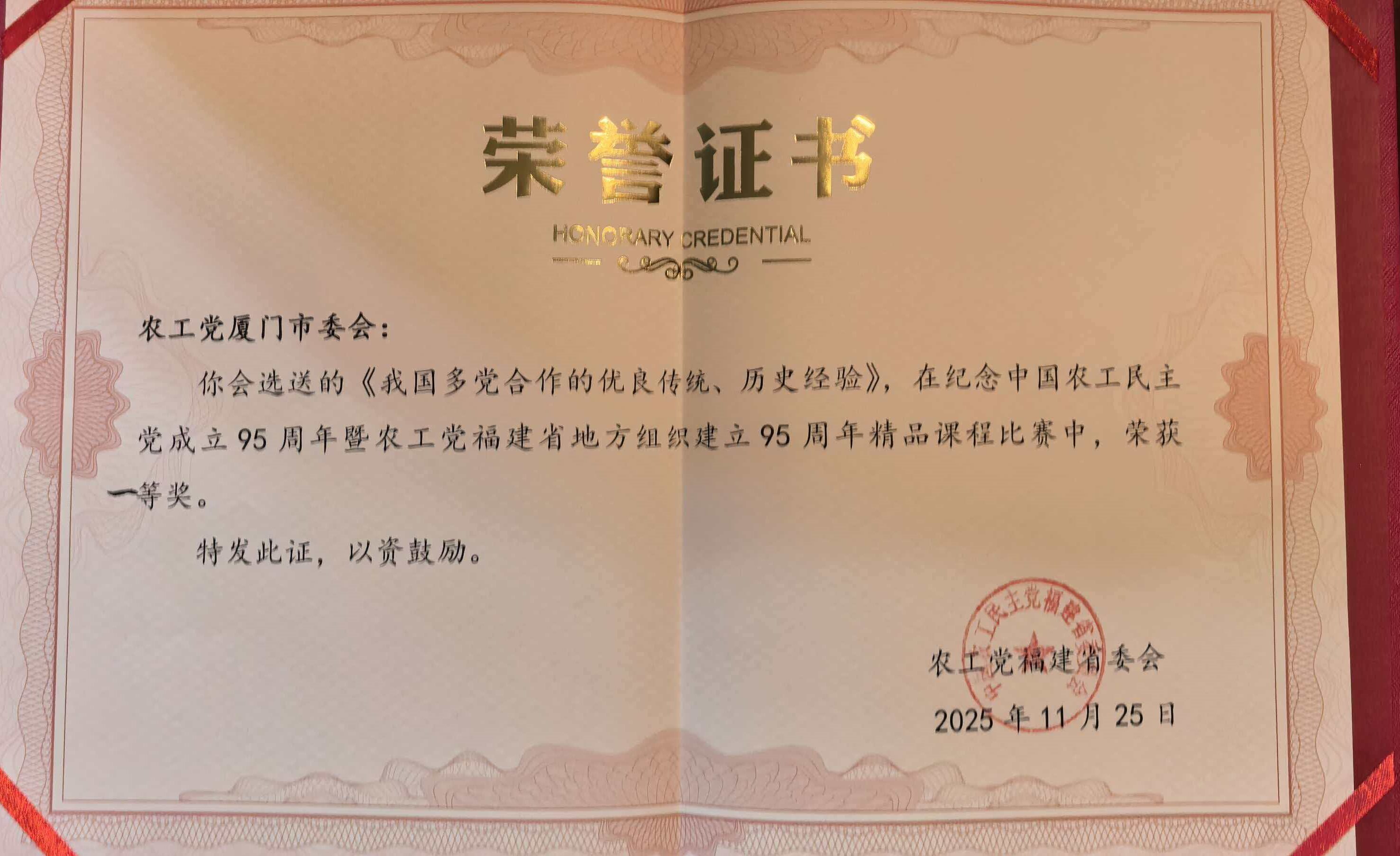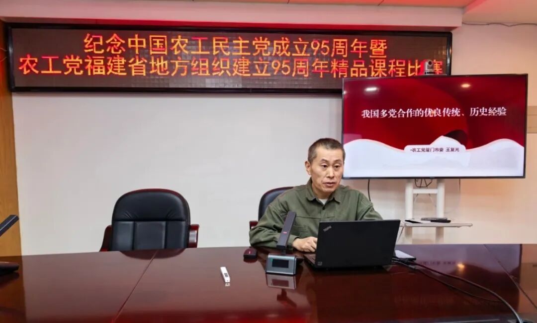 11月25日,庆祝中国农工民主党成立95周年暨农工党福建省地方组织建立95周年精品课程比赛决赛在农工党福建省委会机关会议室举行。厦门市委会选送由组织处处长王复光主讲的《我国多党合作的优良传统、历史经验》参赛。