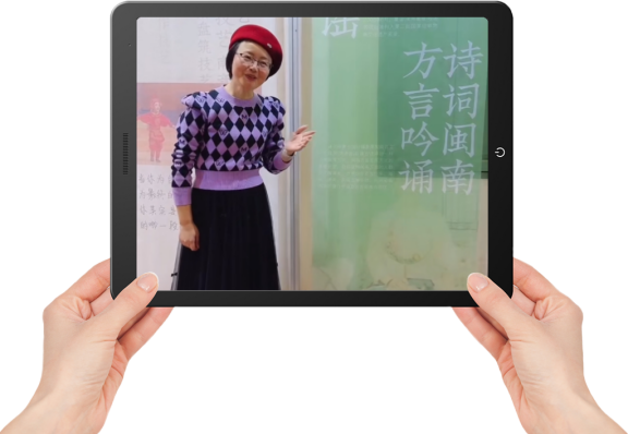 走进民间文学展区,双十中学支部吴秀菊老师,作为市级非遗项目“闽南方言诗词吟诵”的代表性传承人,即兴为众人吟诵了《诗经˙蒹葭》。她以纯正绵长的闽南乡音,将“蒹葭苍苍,白露为霜”的千年意境娓娓道来,古雅的声调抑扬顿挫,情韵悠远,仿佛让沉睡于古籍中的文字瞬间“活”了起来,在当下空间中获得了新的生命。这一现场演绎,不仅生动展现了非遗“活态传承”的深刻内涵,更让在场的每一位同志切身感受到,文化遗产的保护关键正在于“人”的传承与“声”的延续。