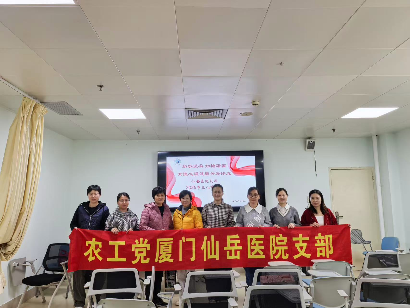 为庆祝“三八”国际妇女节,关注女性心理健康,传递组织温暖,3月10日,农工党厦门仙岳医院支部在院内举办了以“如水温柔 如糖甜蜜”为主题的女性心理健康关爱沙龙活动,支部10位女党员齐聚一堂,共赴这场心灵之约。 活动现场,女党员们围绕在工作,家庭与自我成长中面临的压力与情绪困扰,共同分享和讨论了情绪管理,压力调适,自我关怀等心理健康话题。支部组织委员张鸿鹤用生动的语言引导大家识别负面情绪信号,学习科学的减压技巧,鼓励女性朋友们在忙碌的生活中关照自我、接纳自我,以更积极平和的心态面对生活挑战。现场气氛热烈,参与者们认真聆听、积极互动,在交流中释放压力、汲取力量。党员们表示,此次活动让自己学会了更有效的情绪调节方法,也感受到了来自组织的关怀与温暖。
