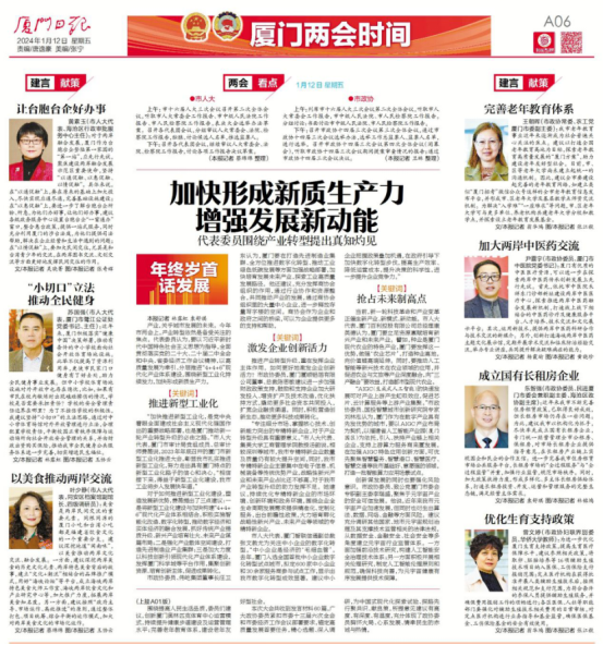 《厦门日报》报道 谢强、柯明月、孙勇、上官小林、陈佳成五位党员作为市人大代表参加了厦门市第十六届人民代表大会第三次会议,为此次大会带来了各自的代表建议。