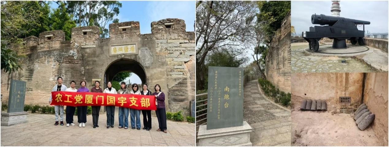 移步南炮台,斑驳城墙与“播荡烟尘”石刻诉说着百年海防史。党员们驻足古炮前,追忆先辈御敌卫国的峥嵘岁月。